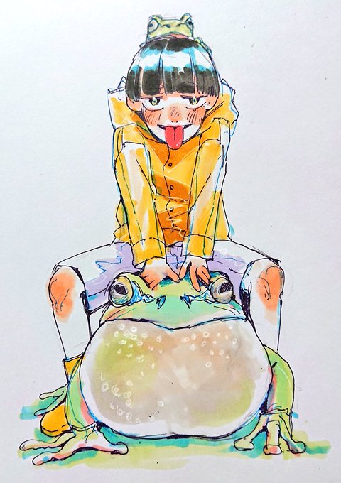 アマガエルというお題で楽描き🐸 #ボールペン #コピック
