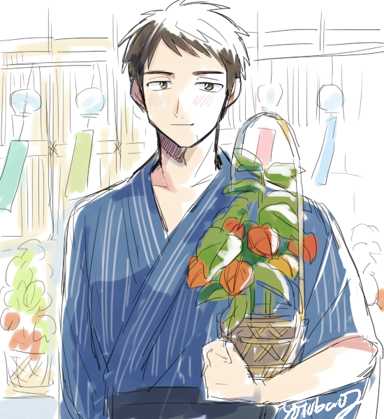 これはヒサシと夏祭りに行ったときのやつ 鬼灯買ってやったらこんな草どうしたらいいんだよって笑ってた 浴衣を着て来てくれて嬉しかった