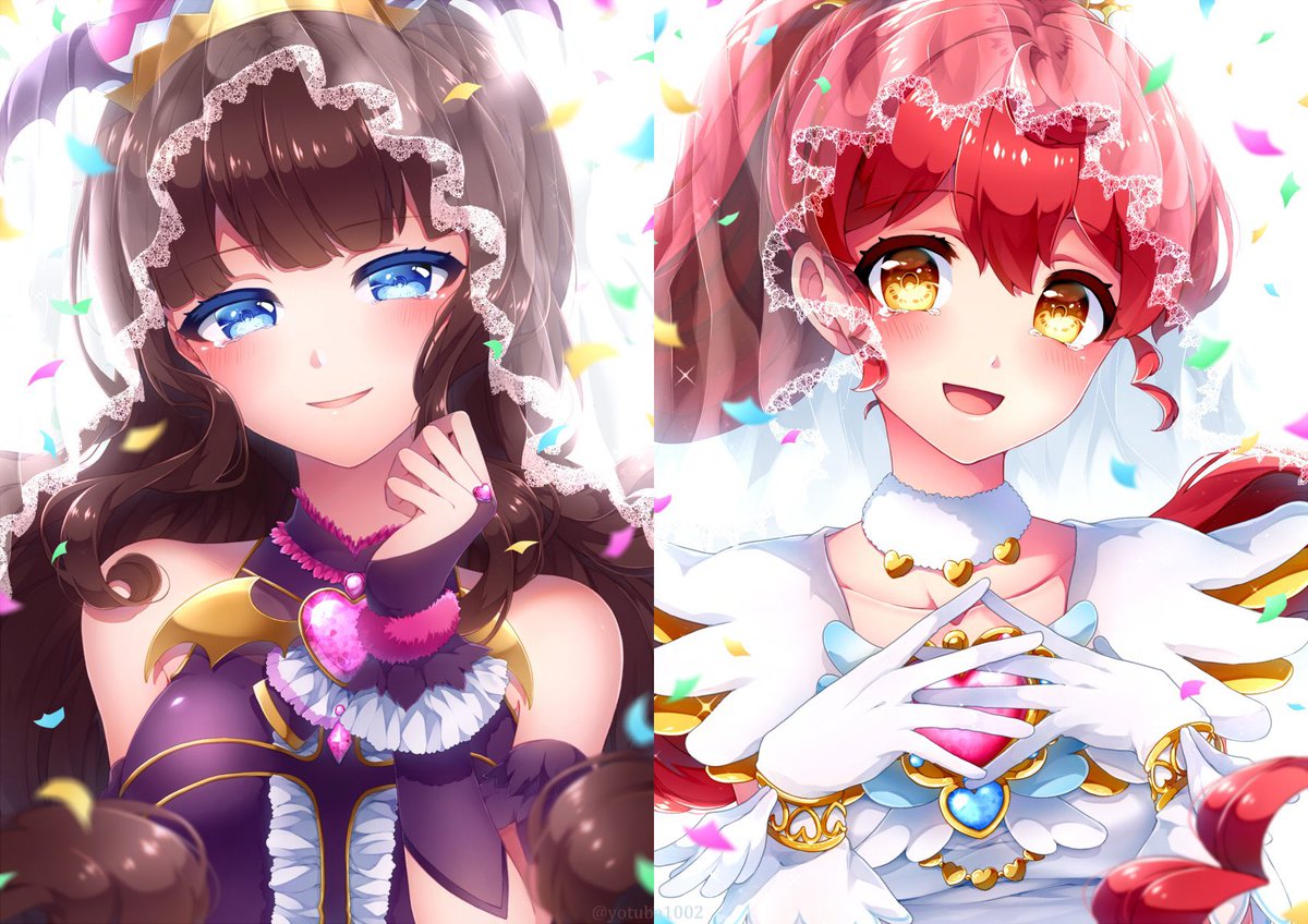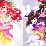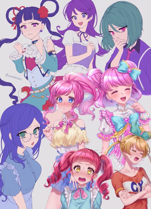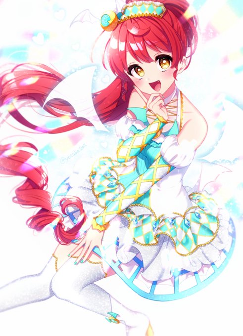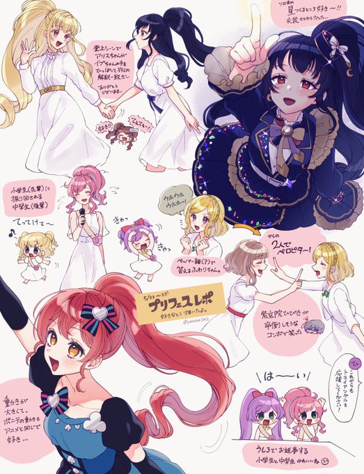 #私の選ぶプリティーシリーズ最強コーデ 選ぶの難しいけどアロマゲの最初のライブコーデかな プリティーシリーズにハマったきっかけでもあるし、赤髪キャラに水色衣装合わせた人本当に天才だと思う プリマジはネオンチェッカーとチェックセットアップが好き🫶