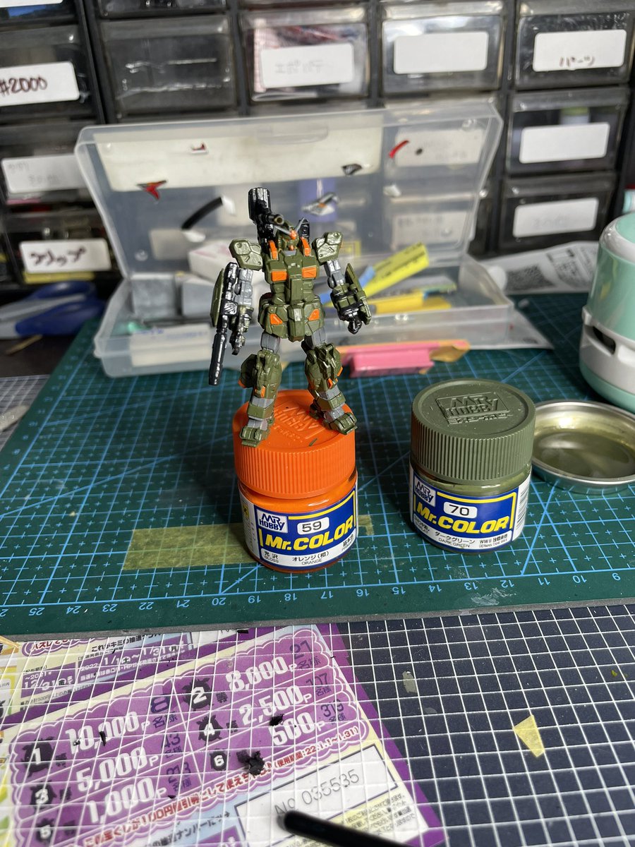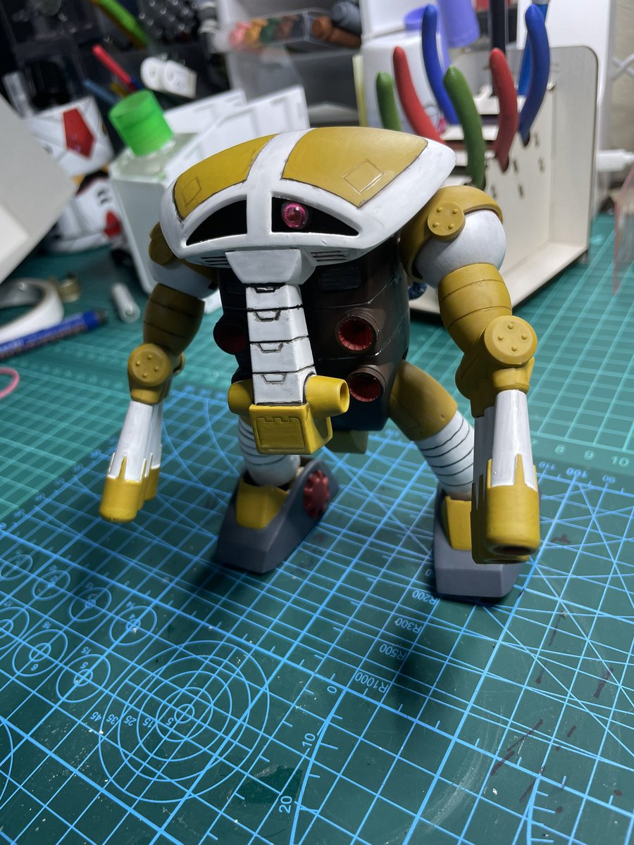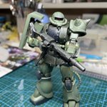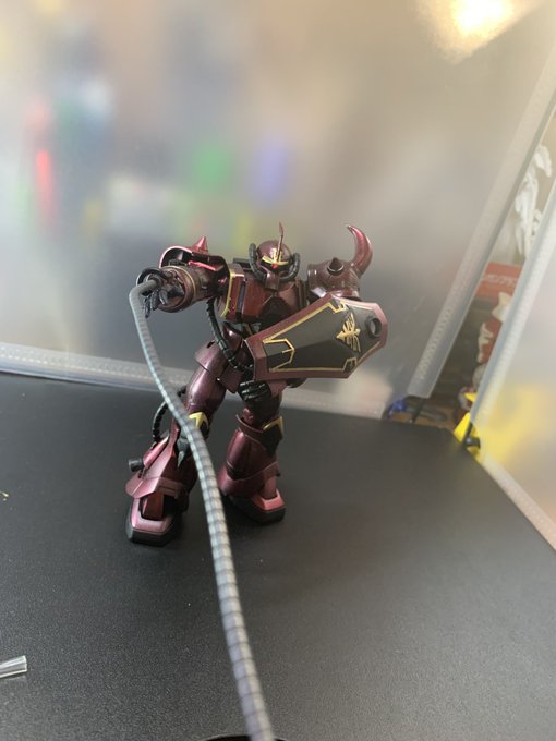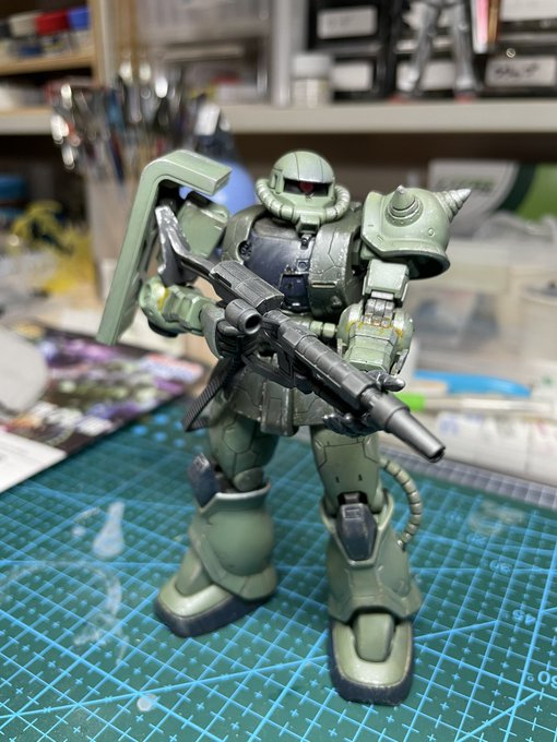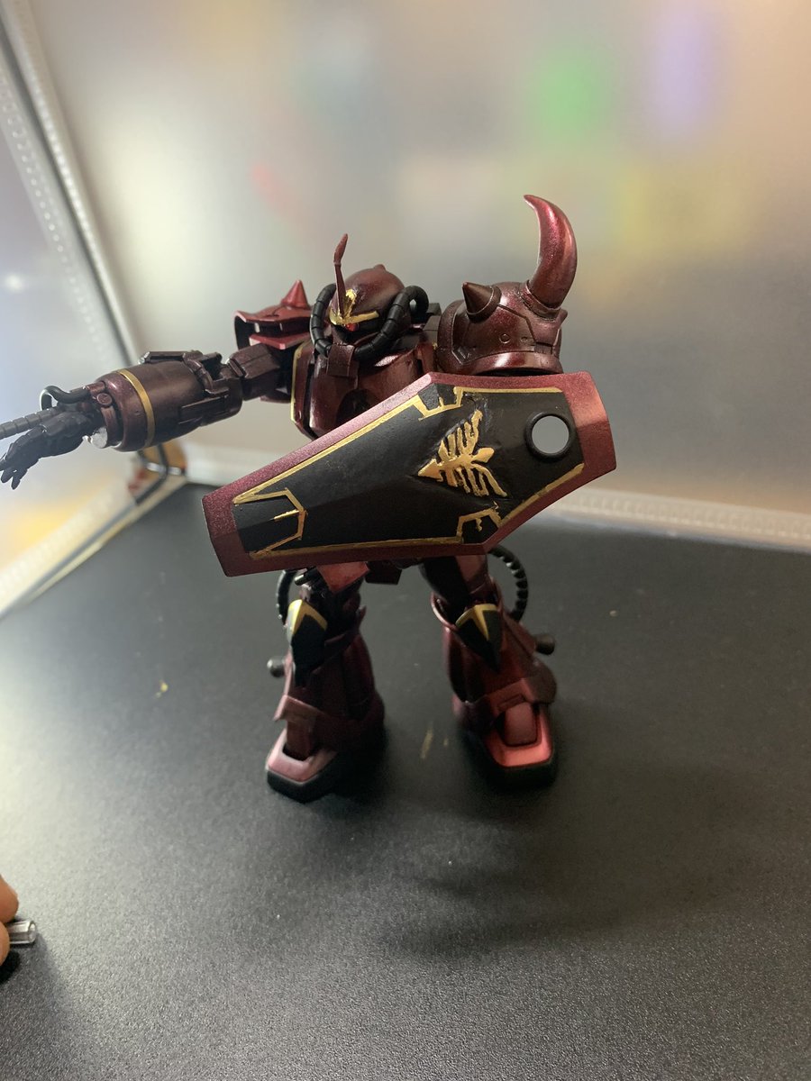 旧キット ジュアッグ 筆塗りして墨入れ使用としたら、筋彫りに塗料が埋まって流せない💦 仕方ないので、ネームペンで誤魔化した(>\._.)カキカキ... #ガンダム #ガンプラの画像を貼るとRTされると聞いて #ガンプラ好きな人たちと繋がりたい