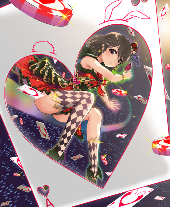 56 86 #佐々木千枝 [とっておきギフト]千枝ちゃん 描くために衣装観察してたらトランプのスートがちりばめられてたりうさぎさんマークのトランプが装飾についてたり、素敵なところにいろいろ気づけてよかった 20/07/19 10:29