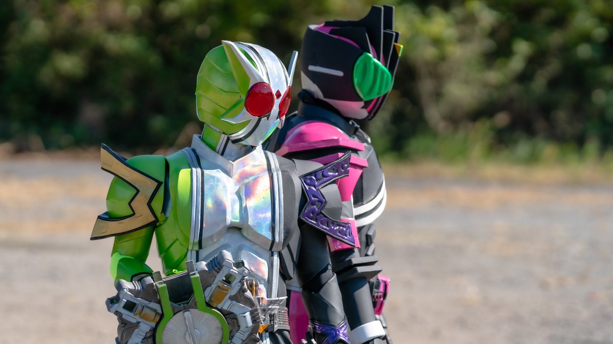 『 念願の初仮面ライダー撮影:速報分① 』 ディケイド:ラダさん @RADAsan_DCD ジョーカー:のヴぁーさん @nover_E ディエンド:L.A.N.D.さん @land0505 カイザ:嵐牙さん @ranga_2st #ジオウ併せin岩舟山爆破撮影会 #コスナビ #コスプレ