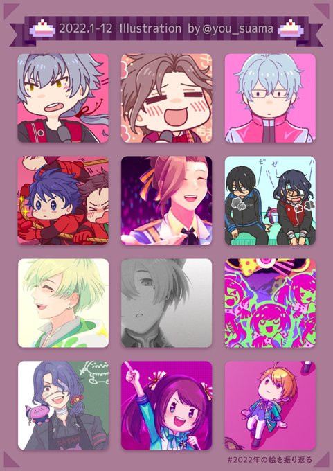 #2022年の絵を振り返る ありがたいことに今年もSideMだけで12枚埋まりました🎂🥂赤色多めな、自分的にもこっそりフィジカル(と、ちょっとメンタル)な年でした。楽しかった…🌟