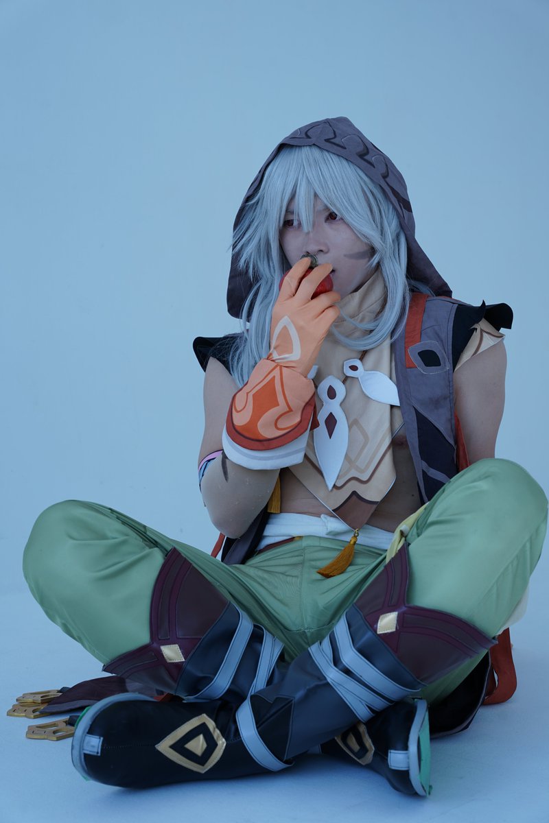 原神 レザー レザーくんに実をこんな感じで食べていてほしいという妄想 #原神コスプレ カメラマンさん →ゆずさん(@yuzu_photo25 )