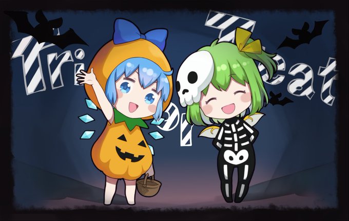 過去絵。 今年もハロウィン絵描きたい。 #東方Project #チルノ #大妖精 #ハロウィン #Halloween
