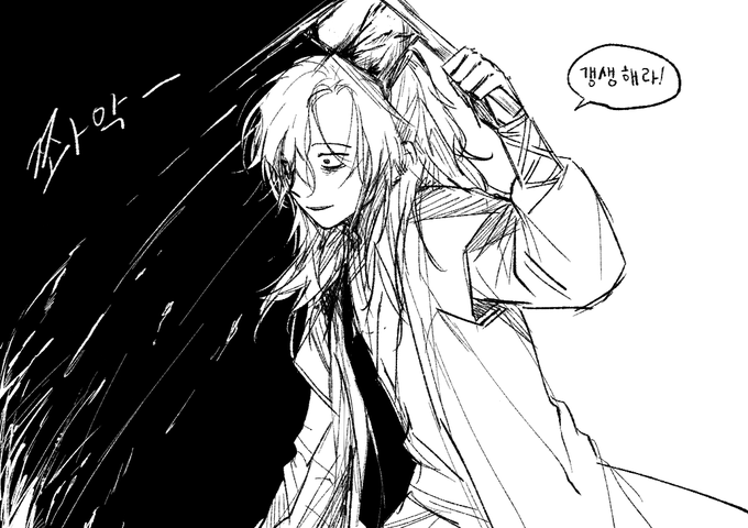 #광마회귀 담계에서 끄적인건데 넘웃겨서가저옴 외전읽고싶어서그렸어요... .....언제오세요....