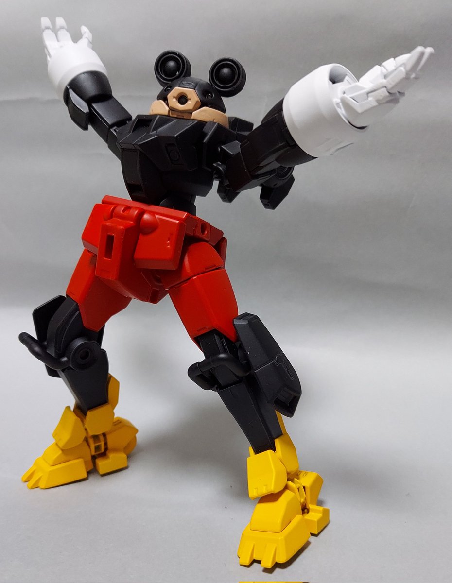 #ケイコクプラモコンペ #完成 #境界戦機 ついに仕上がりました メイレス「ジョウダック」 思ったより色がハマってて草不可避w モチーフは夢の国にいるアヒルですwww 以前のミッ・・・じゃない、デミ・マウスと共に一枚 友人にも言われましたが俺は各方面から怒られるべきだと思いますw