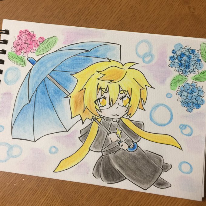 #しろっぽ #水彩色鉛筆 ☔️👓