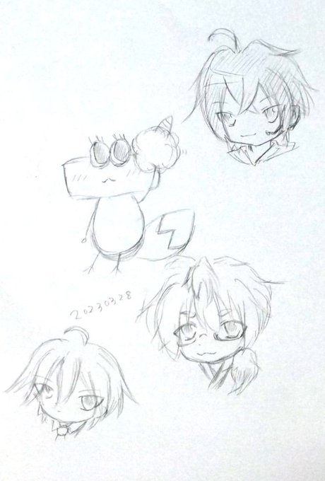 0 3 😈🦈 誕絵下描きの下描き。これから色紙に描く。予定。 #しろっぽ 23/04/07 23:17