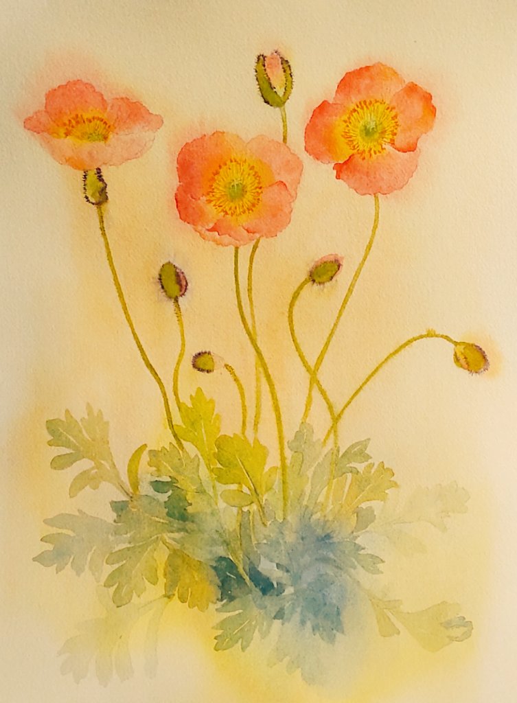 春のお楽しみ、ポピーを描きました。3人娘みたいです。 #水彩画 #ポピー