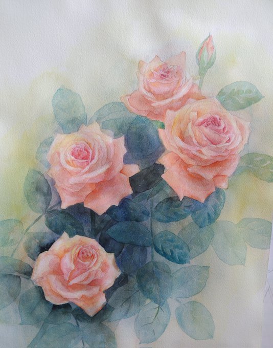 薔薇の花が咲き初めました。これからしばらくワクワクの日が続きます。 #水彩画 #薔薇