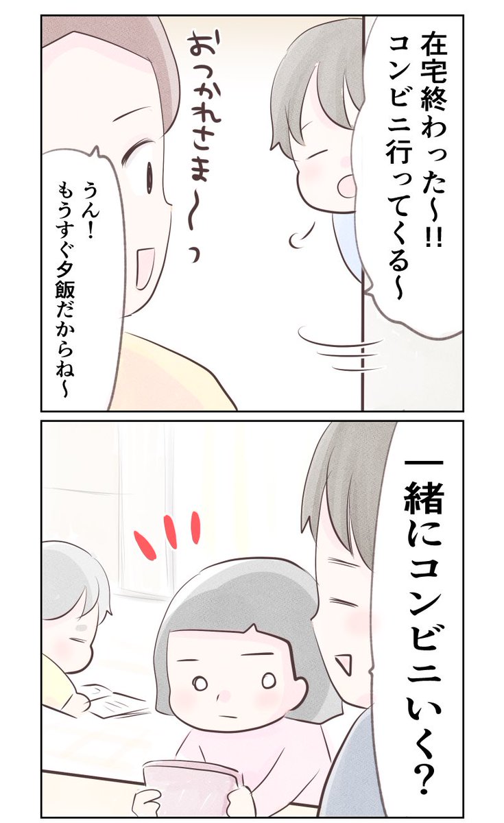 2 5 小さい頃は『コンビニ行く?』と誘うとついてきてくれたのですが、最近は何か買ってくれないと行かなくなった長女… 夫が寂しそうな顔してた😂 #育児漫画 #漫画が読めるハッシュタグ 23/03/01 13:42