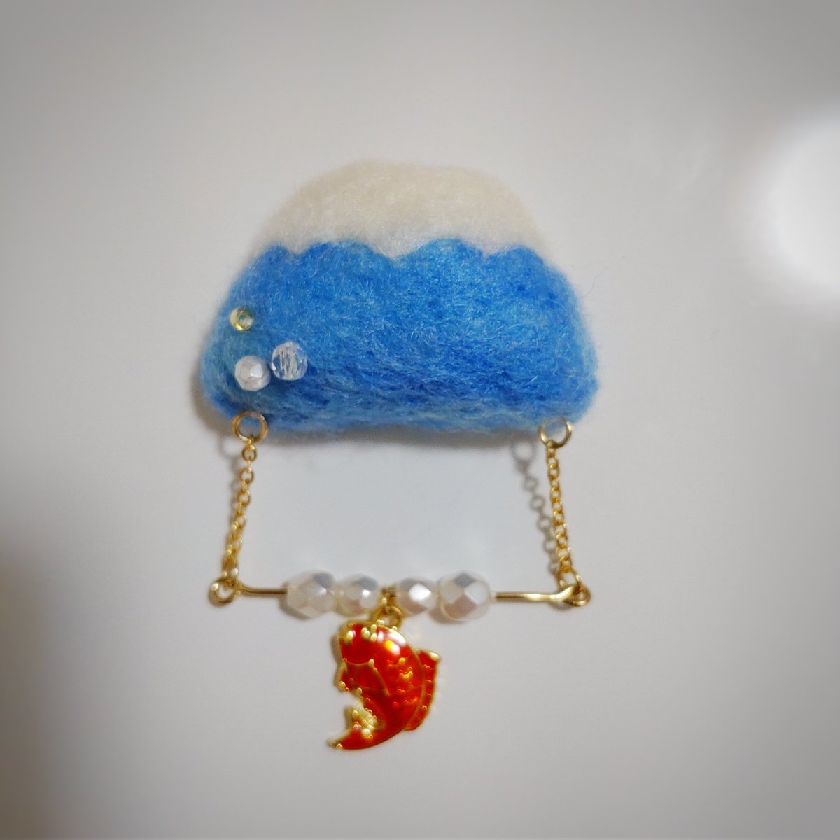 1 2 富士山のブローチに、ビーズを、付けてみました🗻✨ 鯛のビーズがよいアクセントになって嬉しいです🐟 これからも作品たくさん作りたいです💕 #羊毛フェルト #ハンドメイド #ブローチ #ハンドメイド好きさんと繋がりたい 22/11/14 01:27
