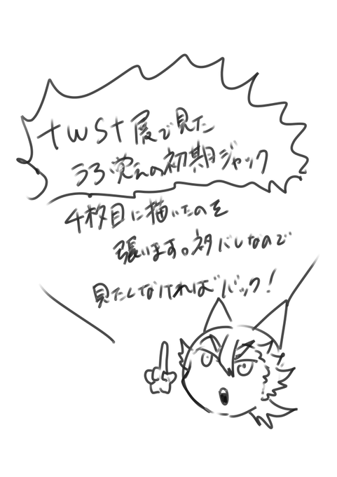 16 199 【twst展ネタバレ注意!!】twst展で見た初期案ジャックを思い出せる範囲で描きました。4枚目に画像があります。3枚目まではクッション。【twst展ネタバレ注意!!】 23/02/20 17:12