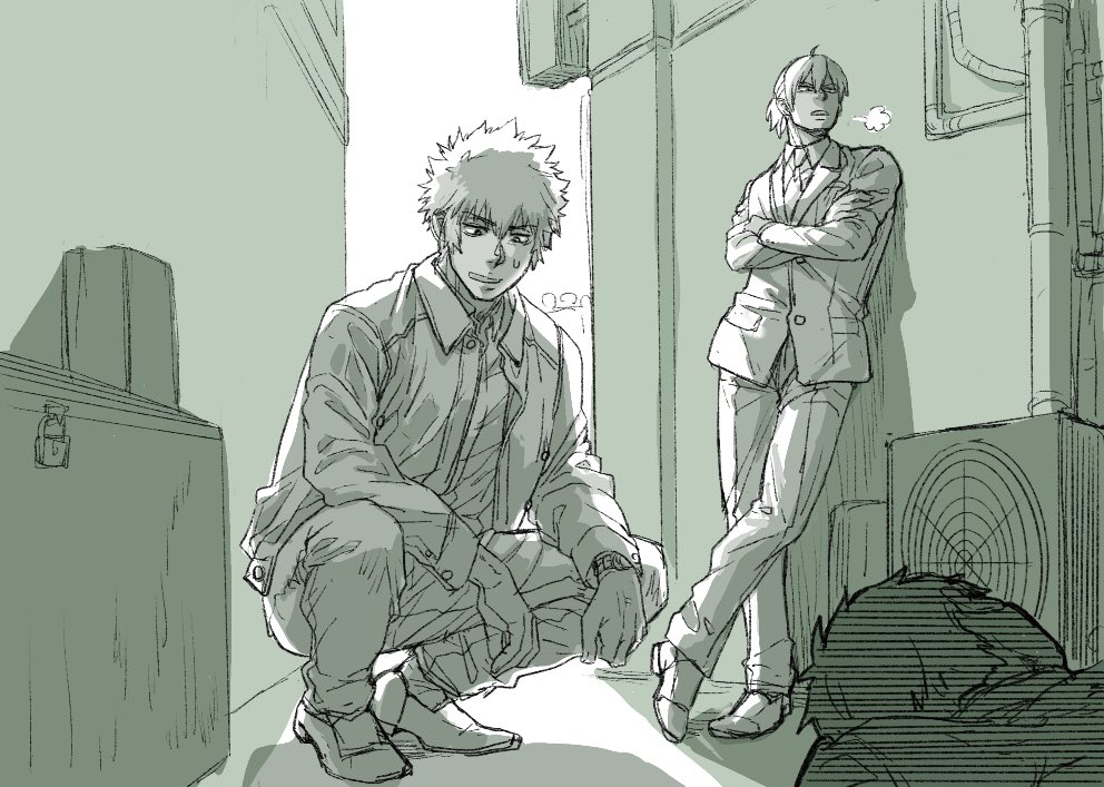 82 468 お昼休みの落書きなんだわ。 5年の執行官生活を経た宜野座君の喧嘩っぱやさに、おいおい…ってなる狡噛君はいると思うんだ。 23/07/11 12:26