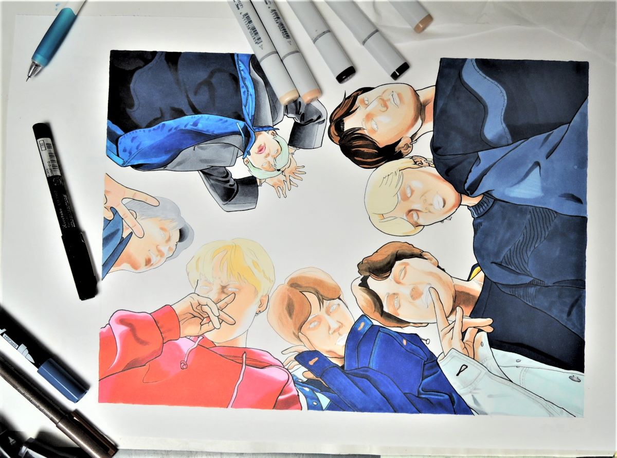 9月の作品展示会の準備でなかなかアップ出来ず…展示作品の一つです #コピック #アナログイラスト #Illustraiton #防弾少年団 # 방탄소년단 #BTS ##私の絵柄が性癖に刺さる人に届いてほしい
