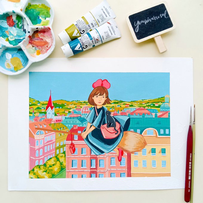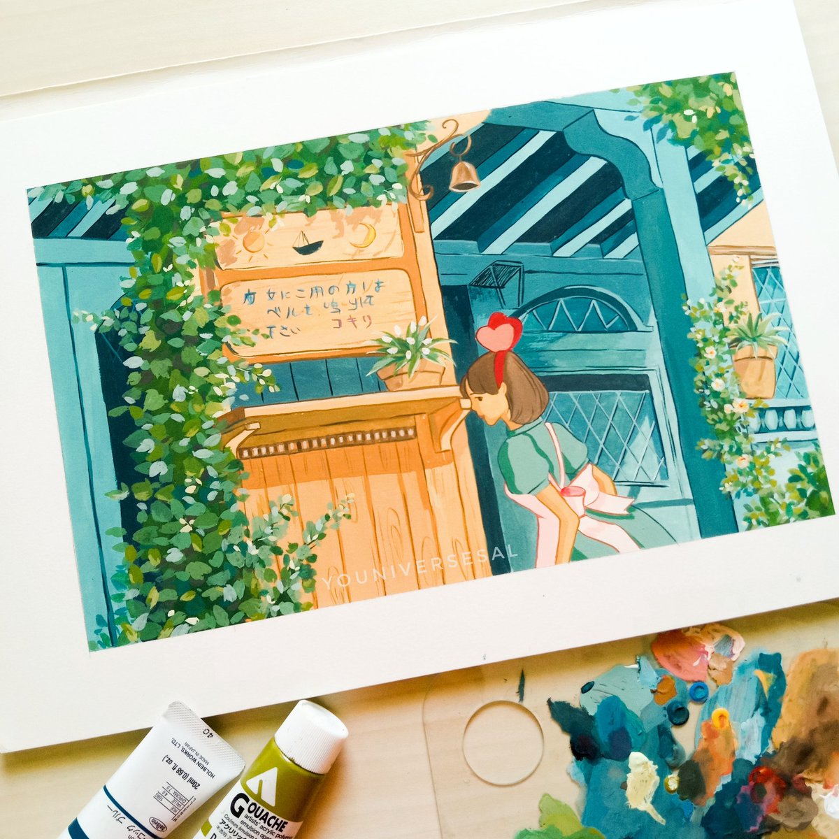 3/10 of #ghibliredraw : Kiki's delivery service (1989) 🧹 #gouache 95/100 of #Sal100dayschallenge