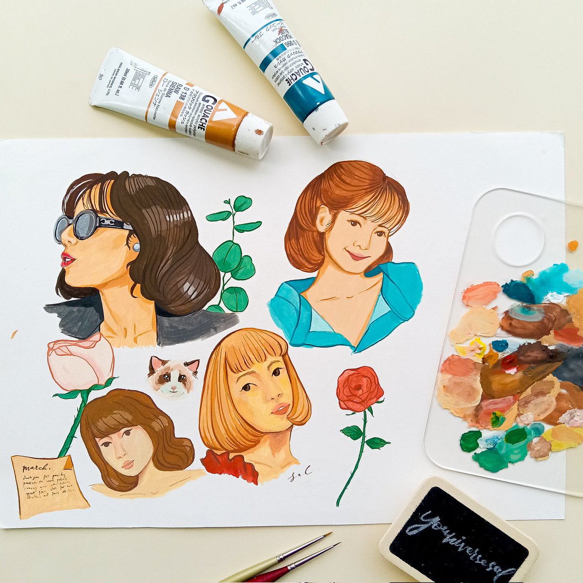 Hello! This is Sal. Meet my hobbies using gouache and watercolor. I also draw animals, botanicals and portraits. #PortfolioDay 🌼 youniversesal.carrd.co 🌼 instagram.com/youniversesal