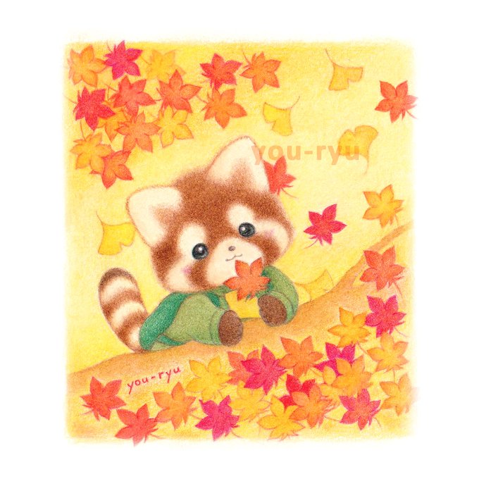 ~ 🍁秋色遠足 ~ #レッサーパンダ ちゃん #紅葉 #落ち葉 #旅 #遠足 #秋 #思い出 #イラスト #アート #イラストレーション #redpanda #animal #trip #travel #autumn #memory