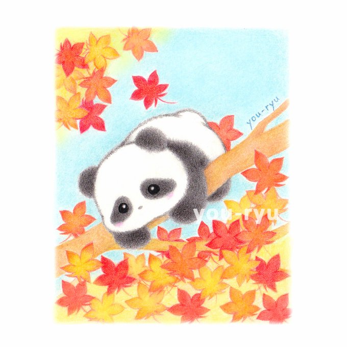 1 21 ~ 秋空の下で… ~ #秋 #のんびり #ゆったり #パンダ ちゃん #ぱんだ #紅葉 #モミジ #秋空 #秋 #動物イラスト #イラスト #イラストレーション #絵 #アート #illust #illustration #artwork #art #autumn #maple #sky #panda 22/10/15 00:35