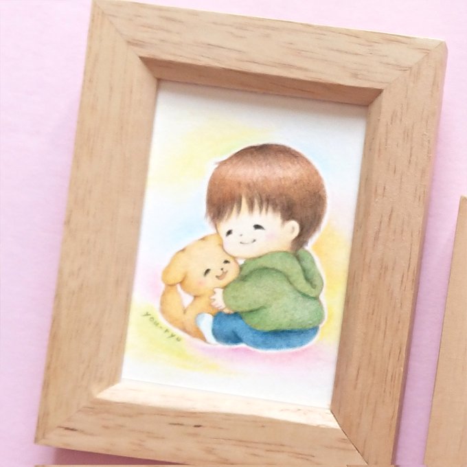 〜 おはようのぎゅっ🌸 〜 #終わりと始まり展 #一色商店 さん @isshikishoten #イラスト #アート #イラストレーション #ぎゅっ #わんちゃん #犬 #仲良し