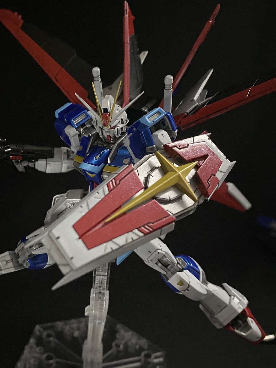 色々調べて昨日の撮影の反省を活かしてもう一回撮影してみた。うーーーんなかなか難しい…塗装だけじゃなくて撮影も難しい。ちなみにこちらはチタニウムフィニッシュ風の全塗装、フォースインパルスガンダムRGです。 #ガンプラ #ガンプラの画像を貼るとRTされると聞いて #ガンプラ初心者