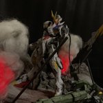 #あなたのプラモの製作から完成まで見せて下さい 1/100 フルメカニクス バルバトスルプスレクス 筆塗り部分塗装、ウェザリング&ダメージ LED発光、内部電池 ジオラマは100均の発泡スチロールと紙粘土で製作 #ガンプラ #鉄血 #ガンプラの画像を貼るとRTされると聞いて