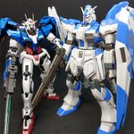 #今月作ったプラモ晒そうぜ RGダブルオーライザーとHGHi-νガンダム 1枚に収めようとようとしたら窮屈になってしまったw