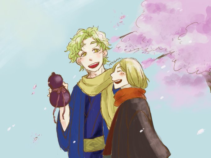 #このタグを見た人は推しの初描きと現在の絵を載せる ふぉろわがやってたんでやりたくなったー! ←2017 2022→ 描きはじめは板タブSai使いだったし、二人いっぺんに描けないから一人ずつ描いて重ねたりしてたし、あと塗りも結構変わったな〜と