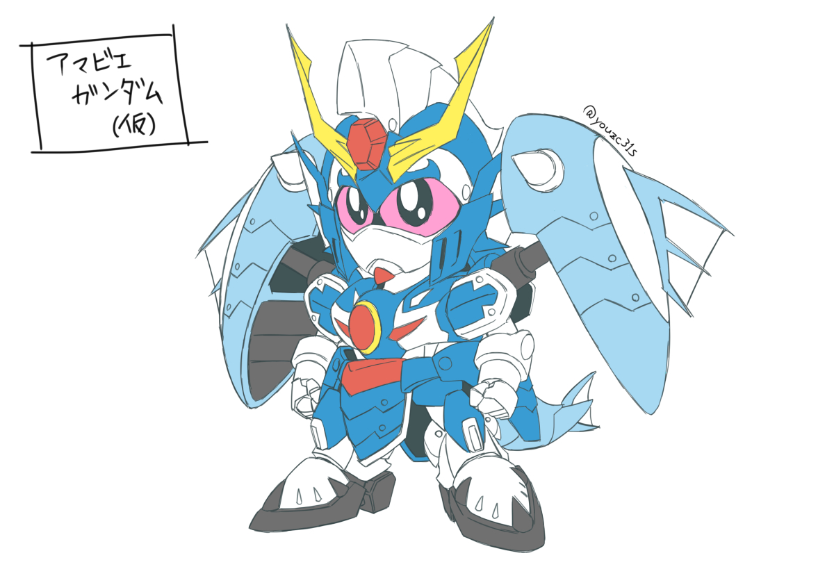 一昨日のアマビエガンダム(仮)がどうにも気に入らない(特にツノと装飾が三国伝っぽいところ)ので第2稿描いてみた。少しは騎士っぽくなった…かな?