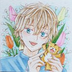 #ちいさなタカラモノ展3 今まで描いたことがないタイプの春らしい爽やか男子に仕上がりました😃✨ 個人的に虎のぬいぐるみがお気に入りです🐯 そろそろ現地に着く頃でしょうか…ドキドキ💓💦 #アナログイラスト #コピックイラスト