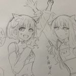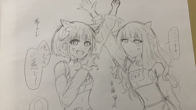 1 6 猫の日ねぇ #鳳えむ #プロセカ #草薙寧々 #ネコの日 #ワンダショ #イラスト #アナログイラスト 23/02/22 20:49