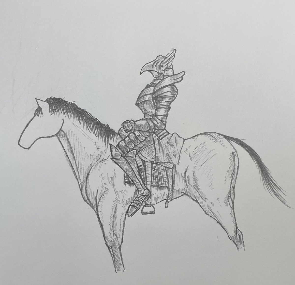 騎士がすこし気に入らないけども馬の出来が良すぎたからよしとする。 #イラスト #お絵描き #落書き