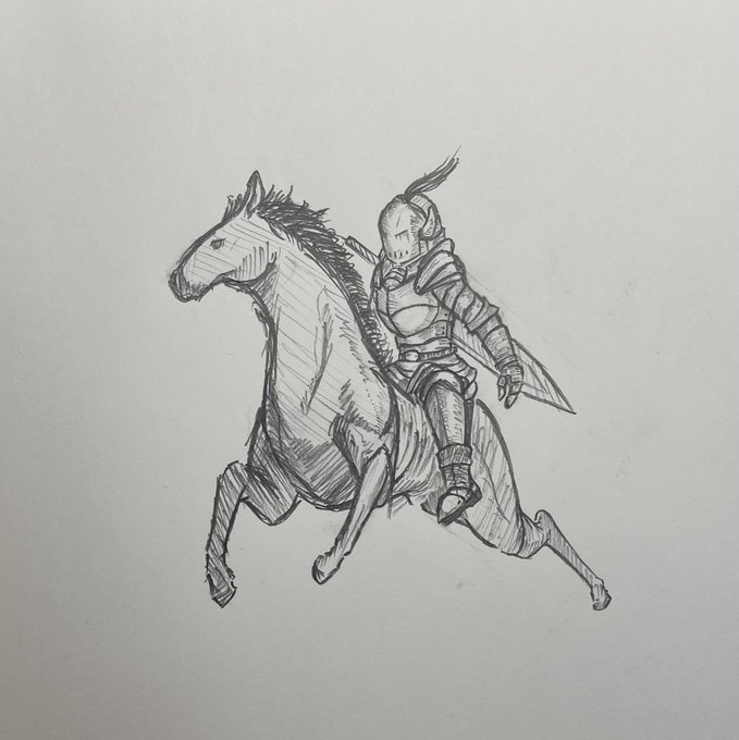 1 10 騎士がすこし気に入らないけども馬の出来が良すぎたからよしとする。 #イラスト #お絵描き #落書き 22/08/29 02:08