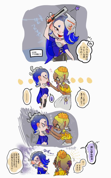 フウカちゃんの真っ赤なアカンベーとウツホちゃんとフウカちゃんにはこういう治安悪めなじゃれ合いをしてて欲しいという落書き #Splatoon3