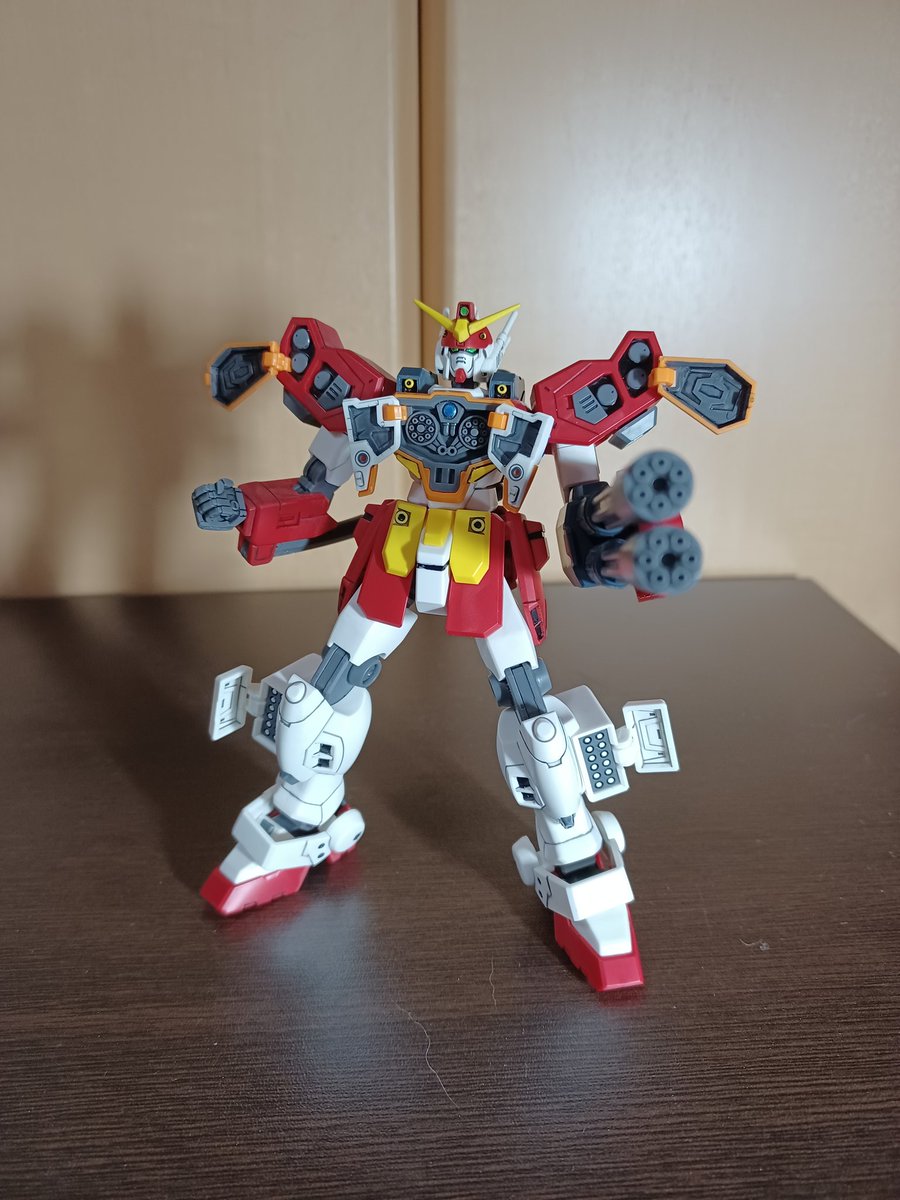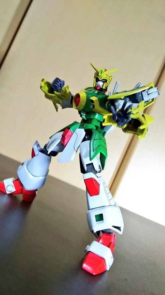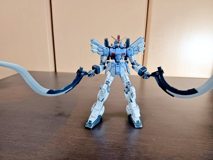 ガンダムナタク #ガンプラ #ガンプラの画像貼るとRTされると聞いて 5日ギリギリに完成いたしました! ほぼ全塗装で、ドラゴンハングの首は銅線でうねるり、追加することでめっちゃ長く伸ばせます 自重で取り回しが悪いのは仕方ないですね(^^; バックパックを借りてフーティエ装備に換装可能です!