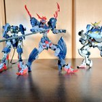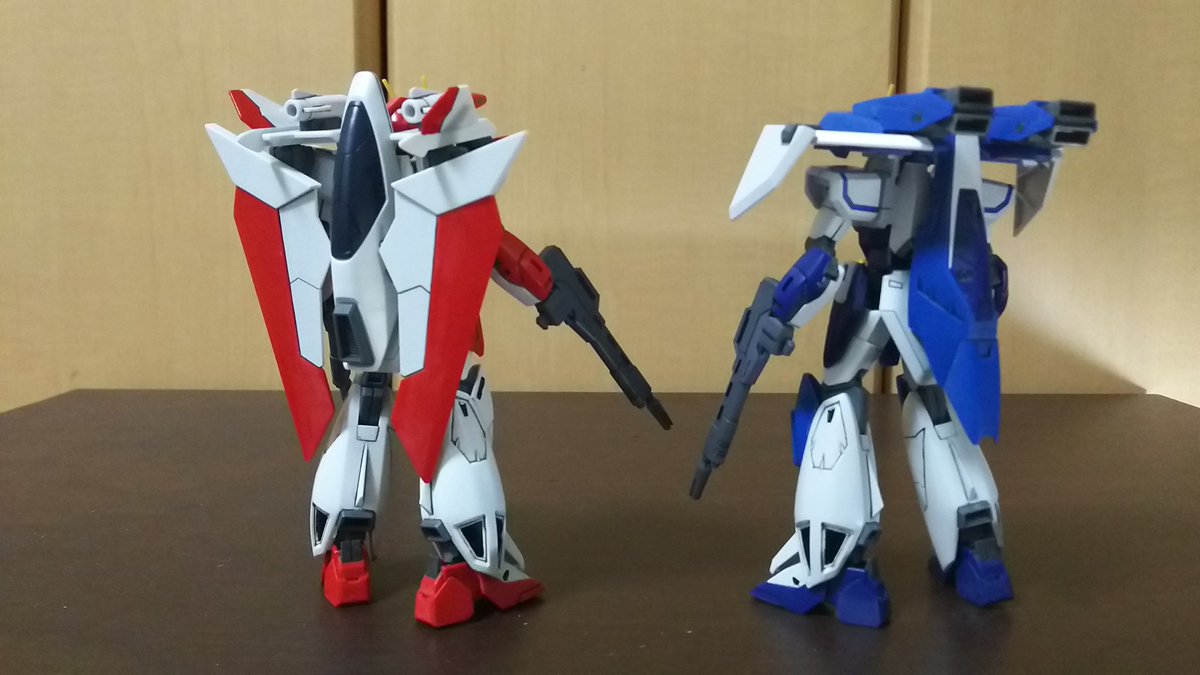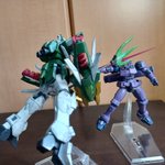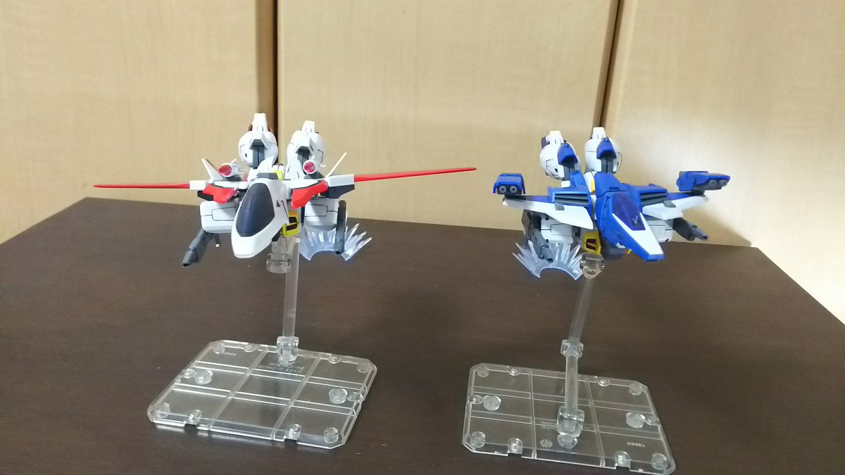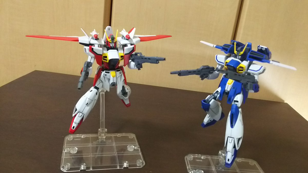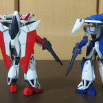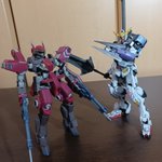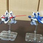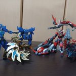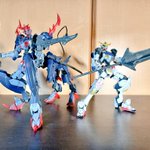 エアマスター&バースト #ガンプラ #ガンプラの画像貼るとRTされると聞いて 簡単部分塗装で完成しました~(* ̄∇ ̄)ノ 基本構造は同じなので片方の説明書で大体が組める優しさよ(*´ω`*) しかも会わせ目らしい会わせは頭部、肩、腿裏くらいな物で処理も楽々です😊 ノーザンポッドの頭もあるでよ😏
