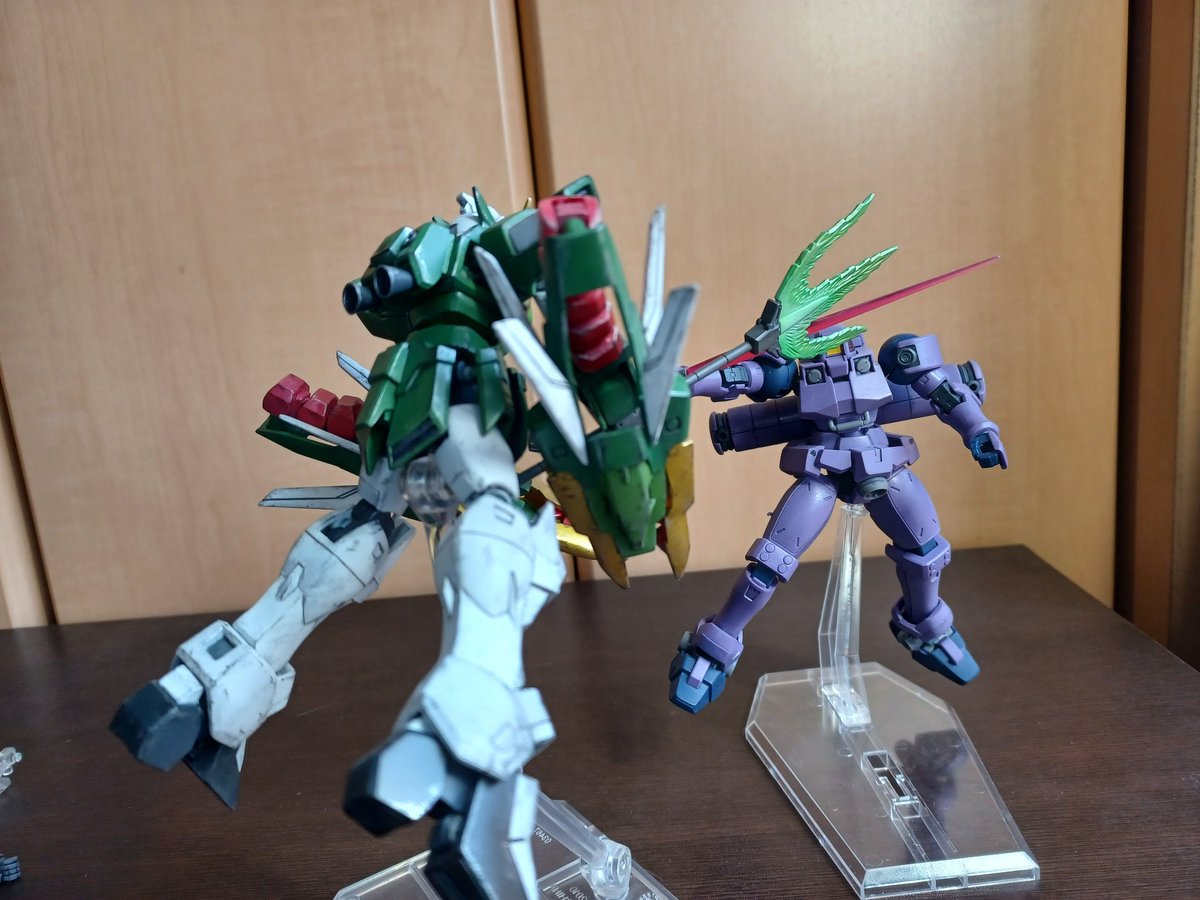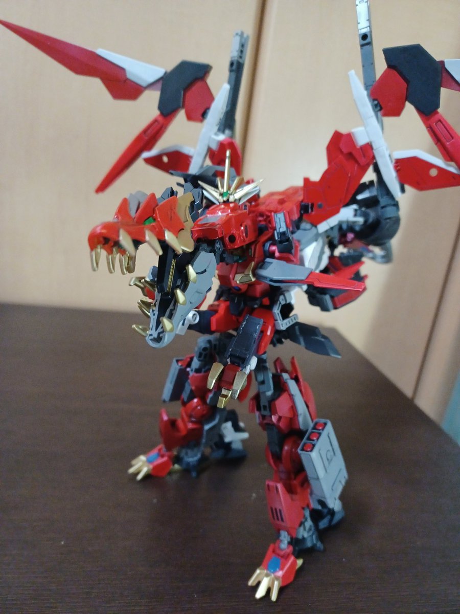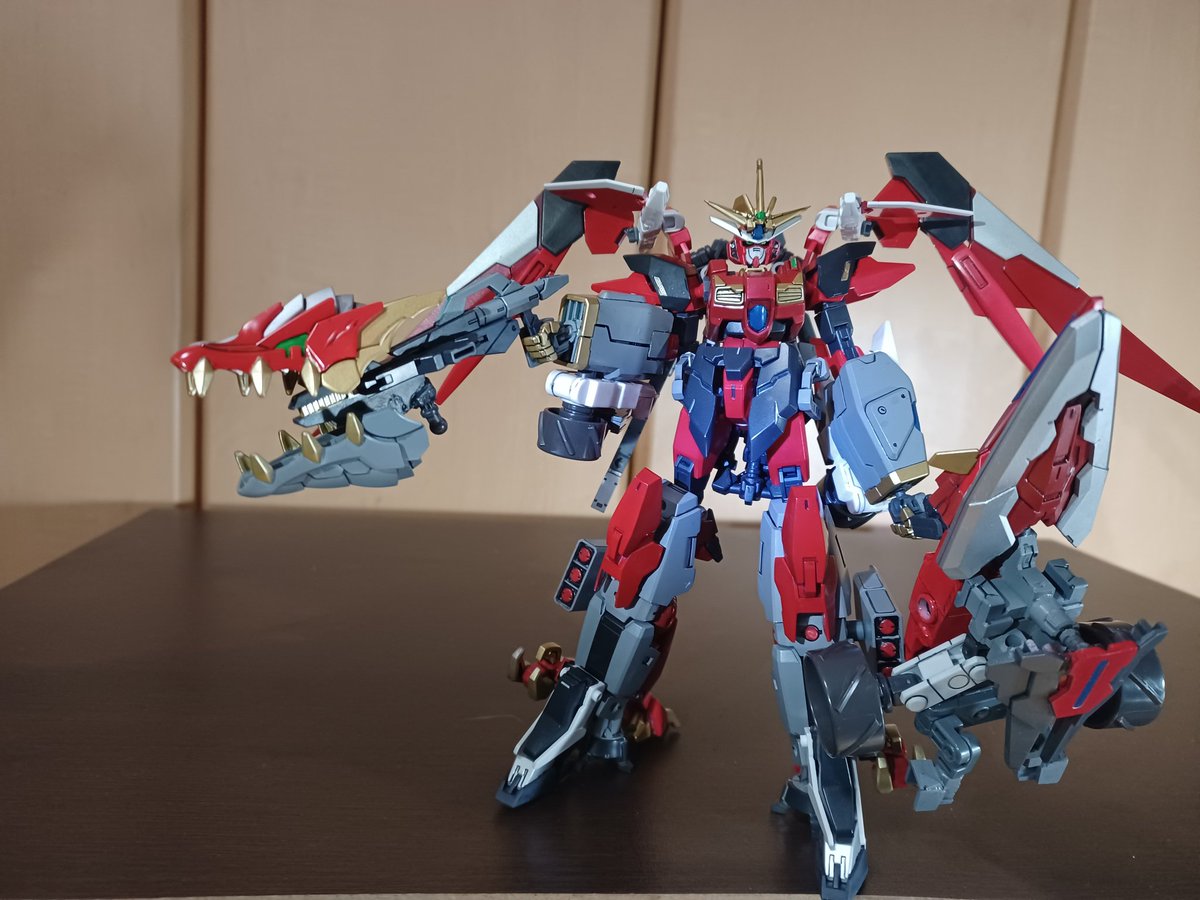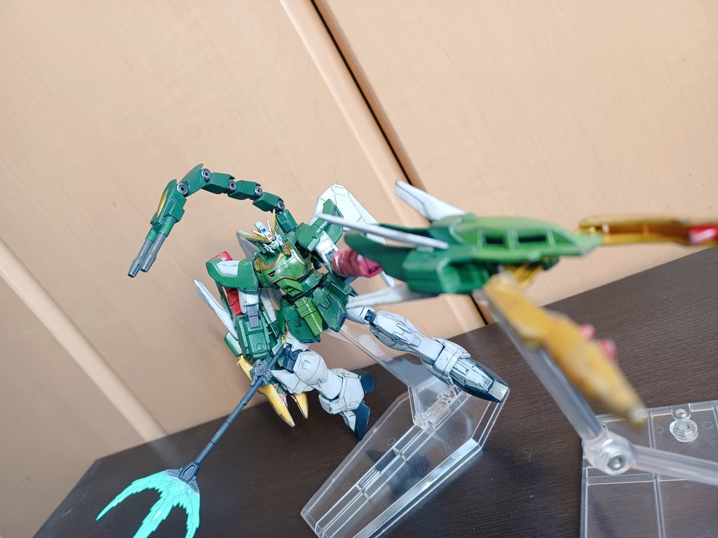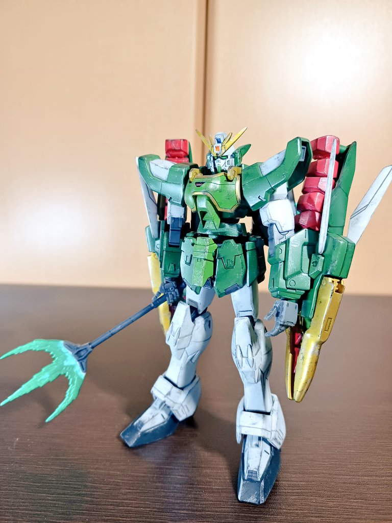 ドラゴンガンダム #ガンプラ #ガンプラの画像貼るとRTされると聞いて デスドラゴンと供に完成です!!(フラッグはないけど😒💦) Gフレームや他のパーツも総動員してどうにか現代化改修が出来ました クロー延長パーツに弁髪刀も自在に可動します 結構粗が目立つけど今自分の出来る全力でやりました