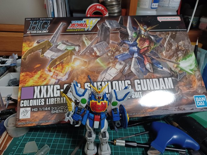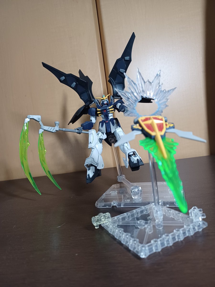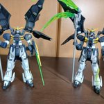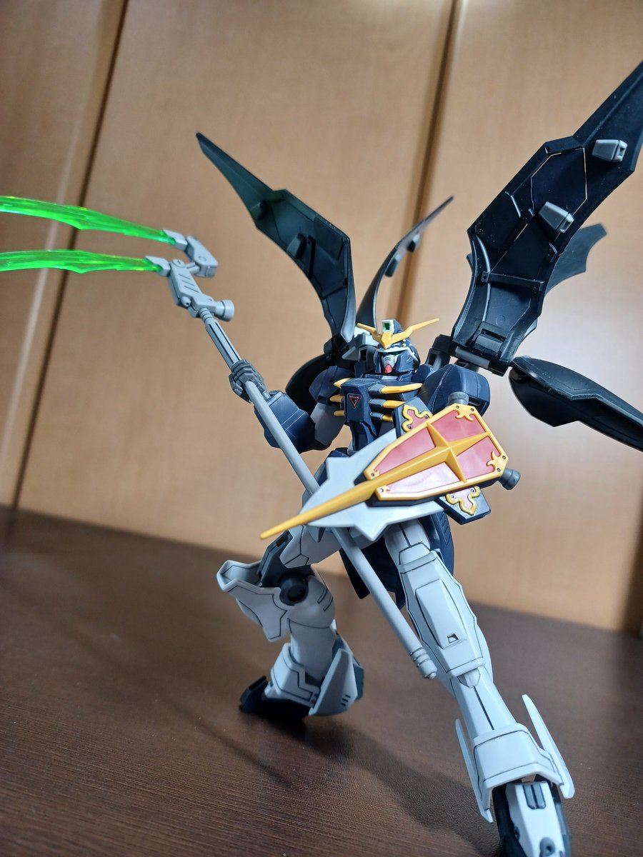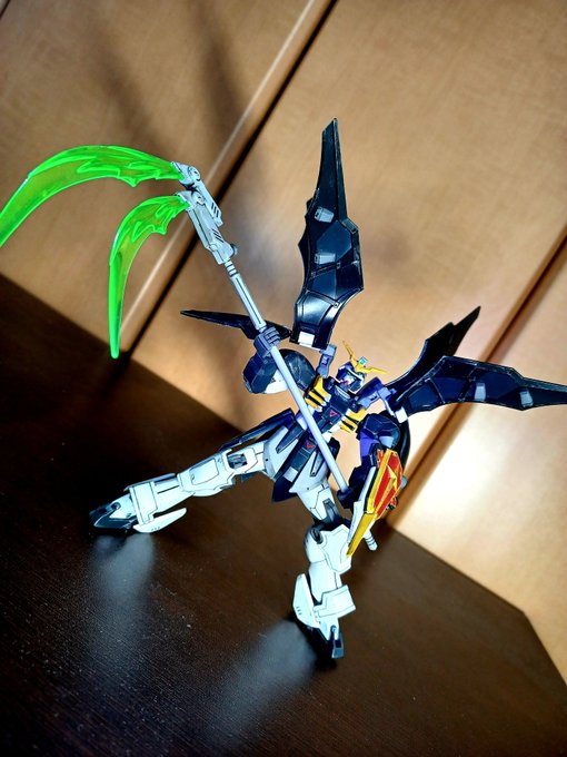 デスサイズヘル完成! #ガンプラ #ガンプラの画像貼るとRTされると聞いて 素のデスサイズとリヴランスヘブンとを経て本家ヘルの完成です! アンテナ、バスターシールドの刃、リアスカート、ビーム刃をちょっと尖らせて、首を0.5㎜底上げした程度の簡単仕上げで済ませました 自作と並べると粗いなぁ