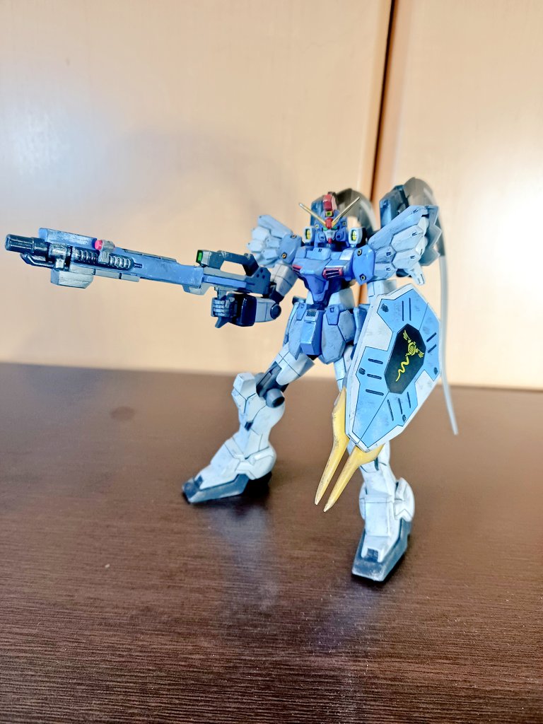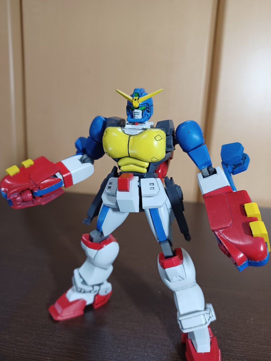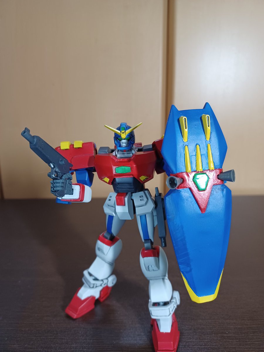 EGガンダム #ガンプラ #ガンプラの画像貼るとRTされると聞いて #ガンプラはどんな自由な発想で作ってもいいんだ 何を思ったかEGガンダムをG3カラーにしてパチ組み風に完成させてみました あえてタッチゲート跡を処理せず、凸った所に白でチッピングで微かに汚し白化してる風に装ってみましたw🤣