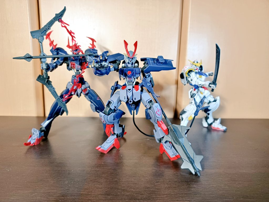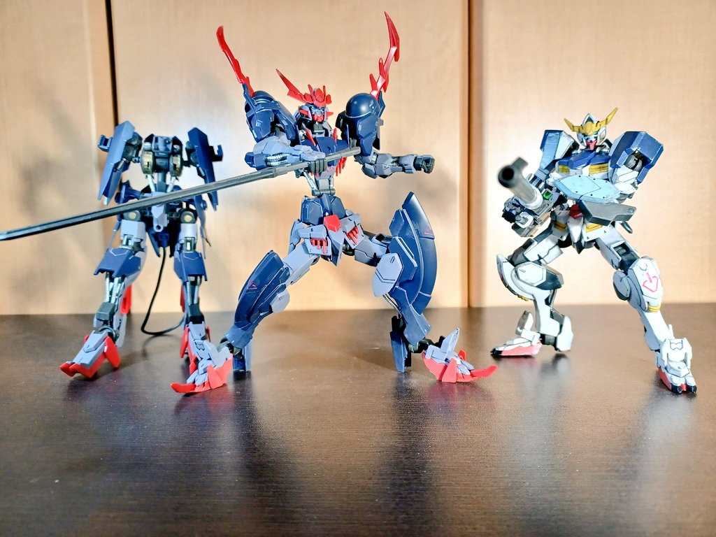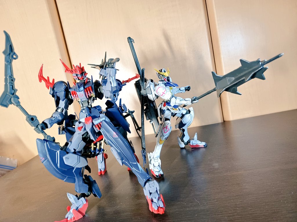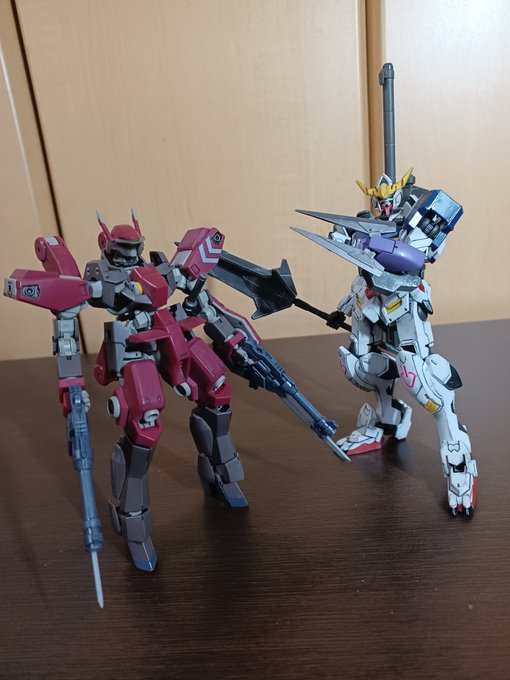 完成!バルバトス&バルバタウロス! #ガンプラ #ガンプラの画像貼るとRTされると聞いて バルバトスは汚して、第1・2・4形態に出来て バルバタウロスは武装追加して2体に分離出来るようにしてみました! バルバタウロスの異形感の上乗せ出来たかな😊 全部乗せしても破綻してないように出来たゼ😁