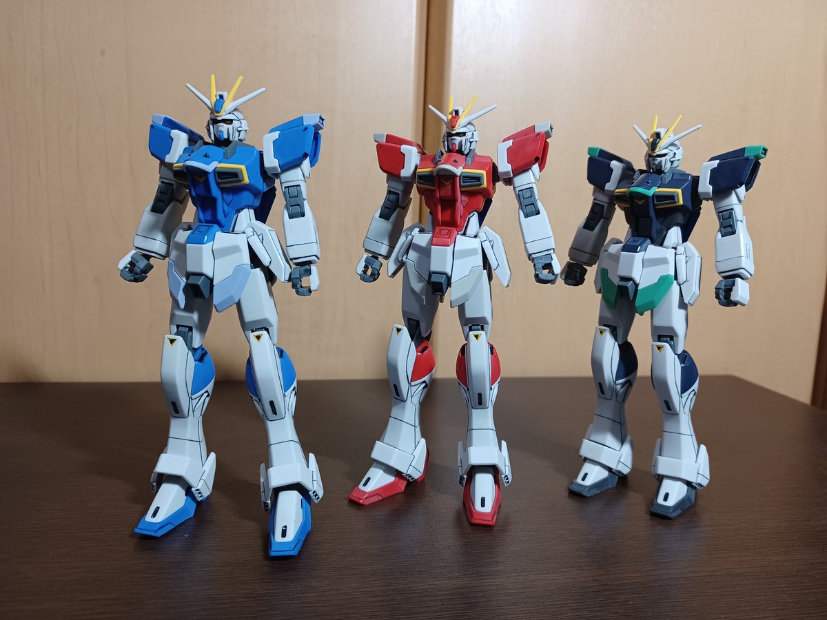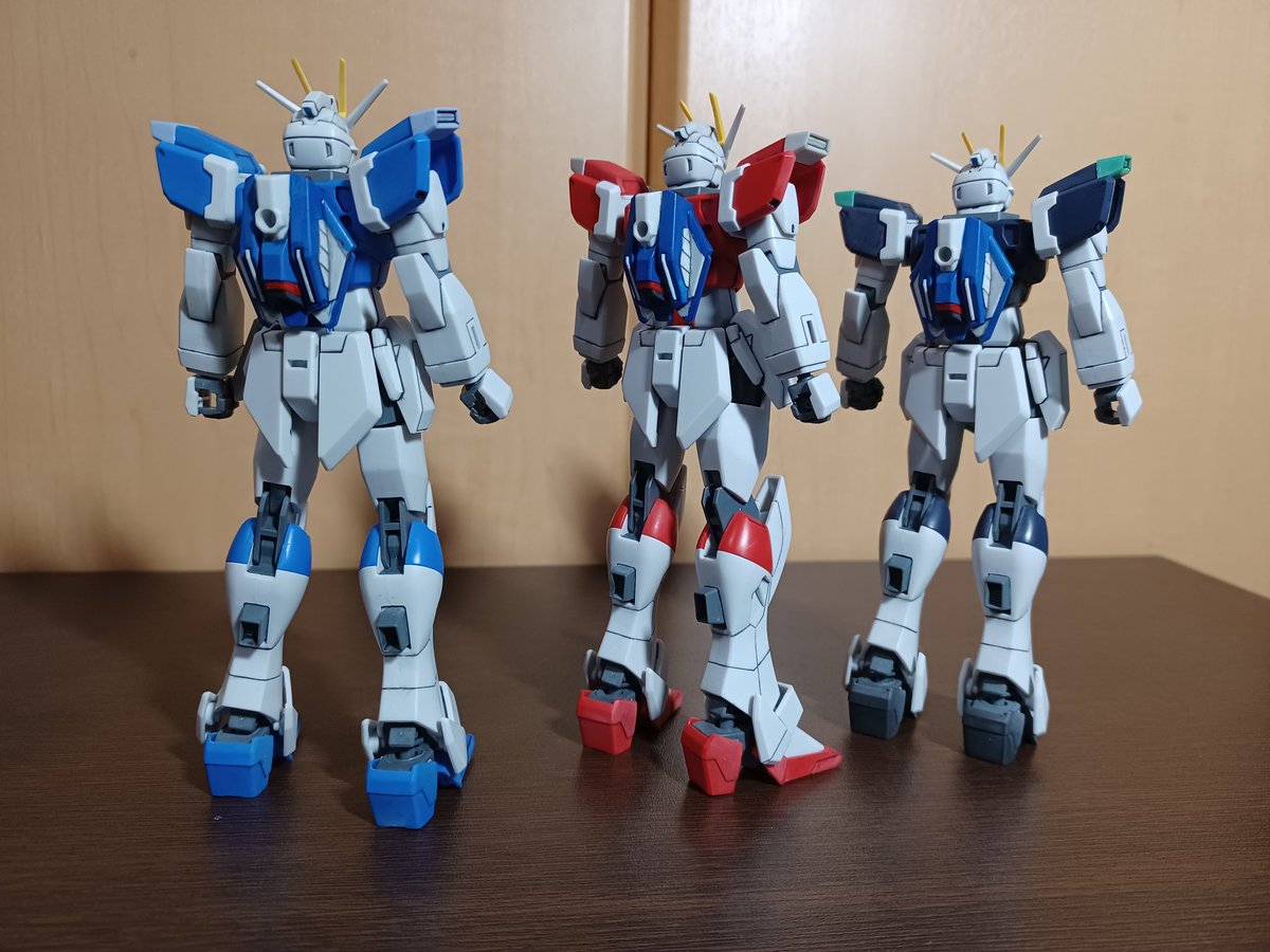 インパルスガンダム3種 #ガンプラ #ガンプラの画像貼るとRTされると聞いて 完成!!赤インパルス!青インパルス!黒インパルス! 放送当時のHGとは違いかなり色分けされてて組みやすいが、コアスプレンダーは白単色だし、胸のVくらいは別パーツだったら有難がそこはRGの領分か え?色が違うってw🤣