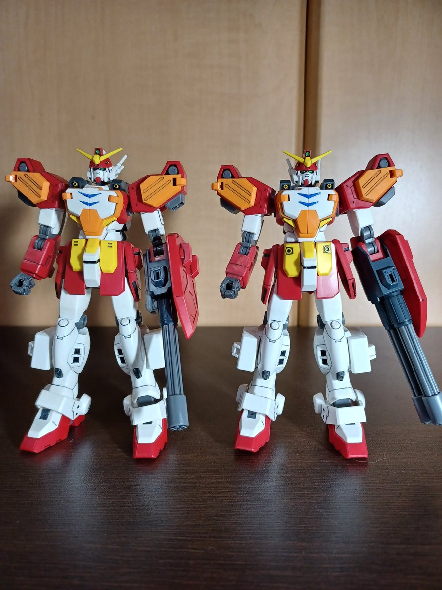 ヘビーアームズ改 #ガンプラ #ガンプラの画像貼るとRTされると聞いて ってな訳で完成いたしました~ やりようによっては換装でどうにか対応出来るよなぁ( ̄~ ̄;) 素の方と並べるとほとんど間違い探しみたいなもんよねw🤣 これにて後半のGチーム勢揃ったゼ(*´ω`*)
