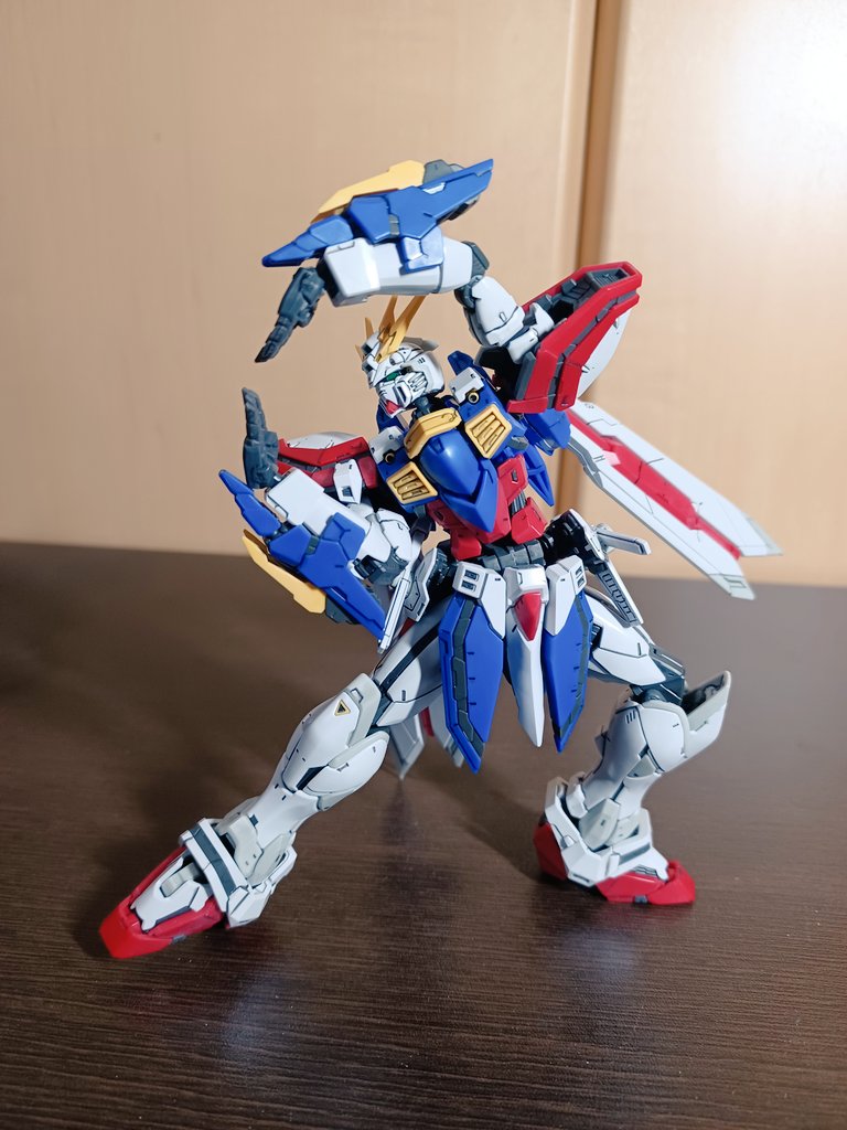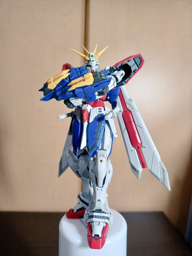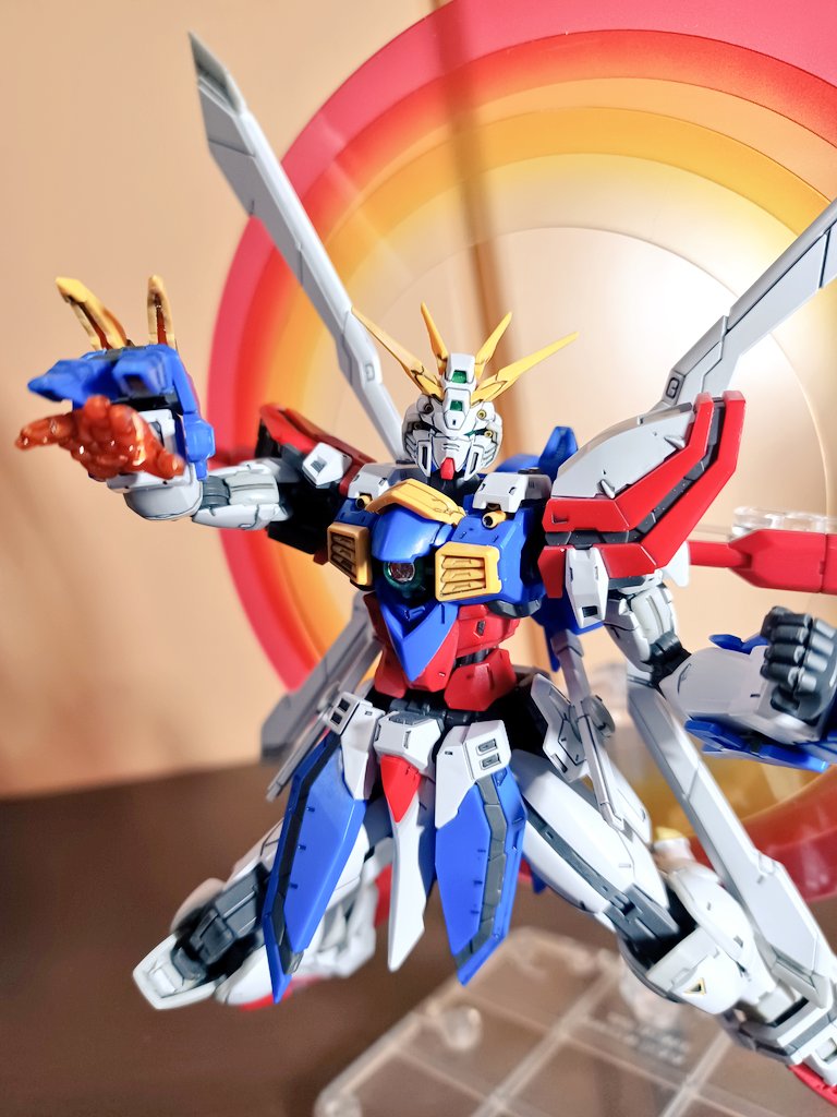 RGゴッドガンダム #ガンプラ #ガンプラの画像貼るとRTされると聞いて 完成いたしました~\(^^)/ こいつは本当スゲェ動くし、OPの腕組みがこんなに決まる、待ったかいがあったよもう😭 バルカンの根元は露出するので、黒のガンダムマーカーで塗っておくと良い感じですゼ😆👍