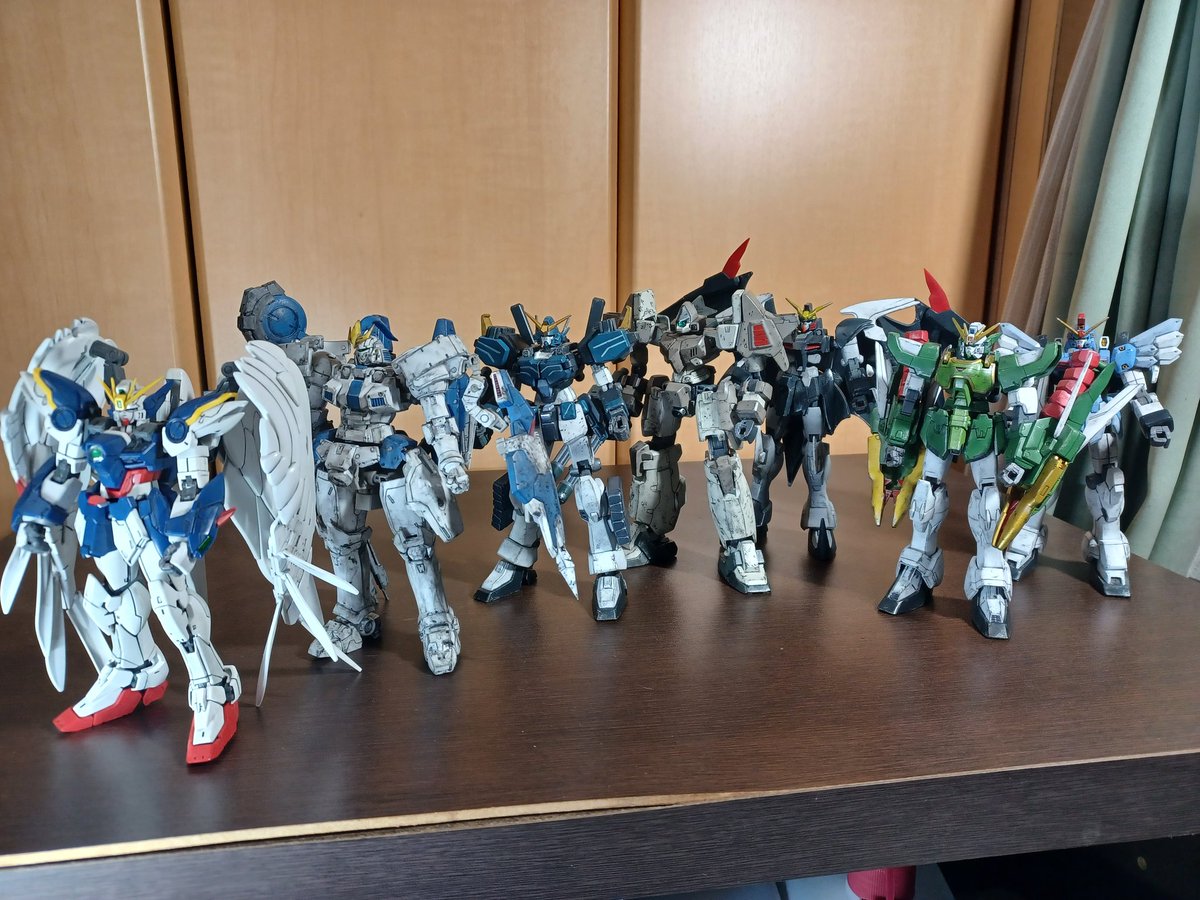 ウイング軍団! #ガンプラ #ガンプラの画像貼るとRTされると聞いて 手持ち全28機、26種並べてみました(素立ちじゃないと入らんwww🤣 さて、今後は何が発売されて何を改造するのであろうか?🤔 しかしまぁ、よくもここまで作ったもんだ😌