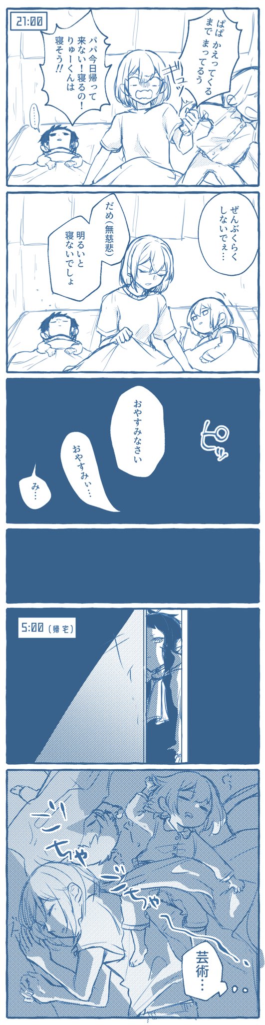 ママやってる樋口さん(旧姓)と長女(4)と長男(2)と暴力を貨幣とするお仕事してるパパ(芥川先輩)の夜更け の芥樋ちゃんです #色んな芥樋ちゃん