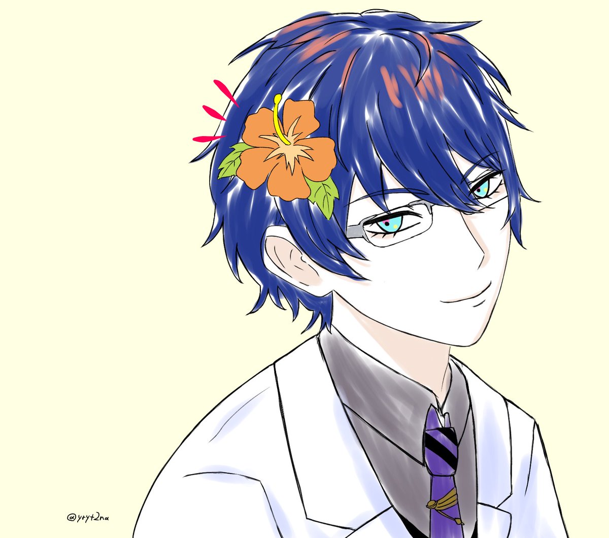 やわらかあたま塾で頭にハイビスカスつけてたの可愛かったなあっていう絵🌺 #まめねことレオス