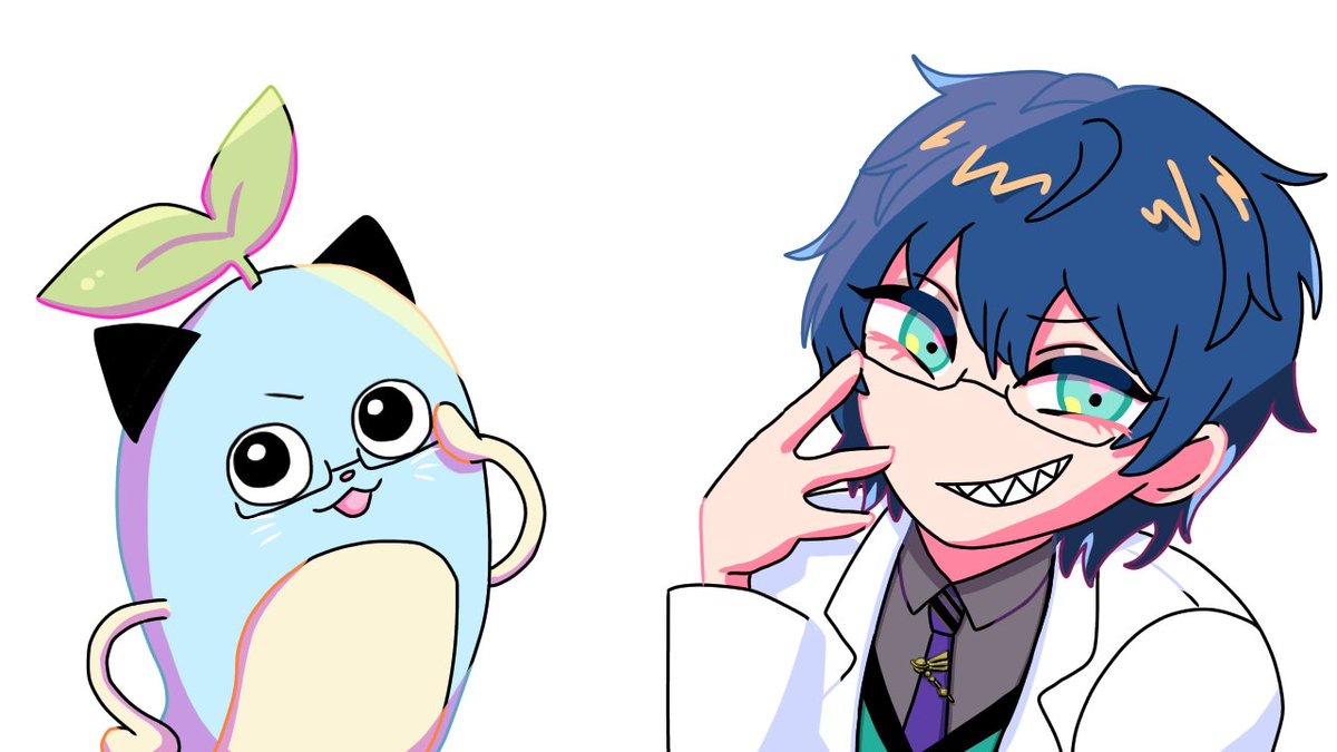 デビュー1周年おめでとうございます! これからも1人と1匹で仲良く活動していってください🥼🌱😺 #まめねことレオス #エデン組1stANV