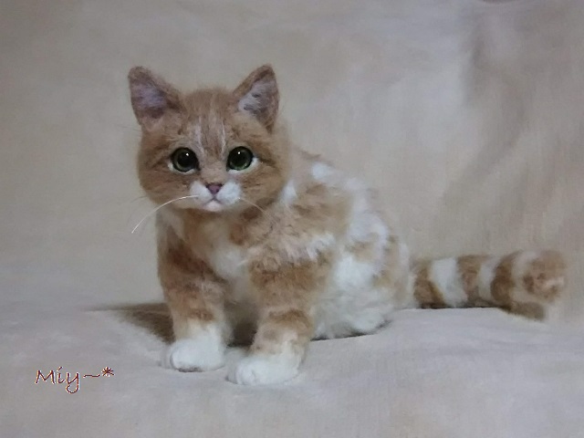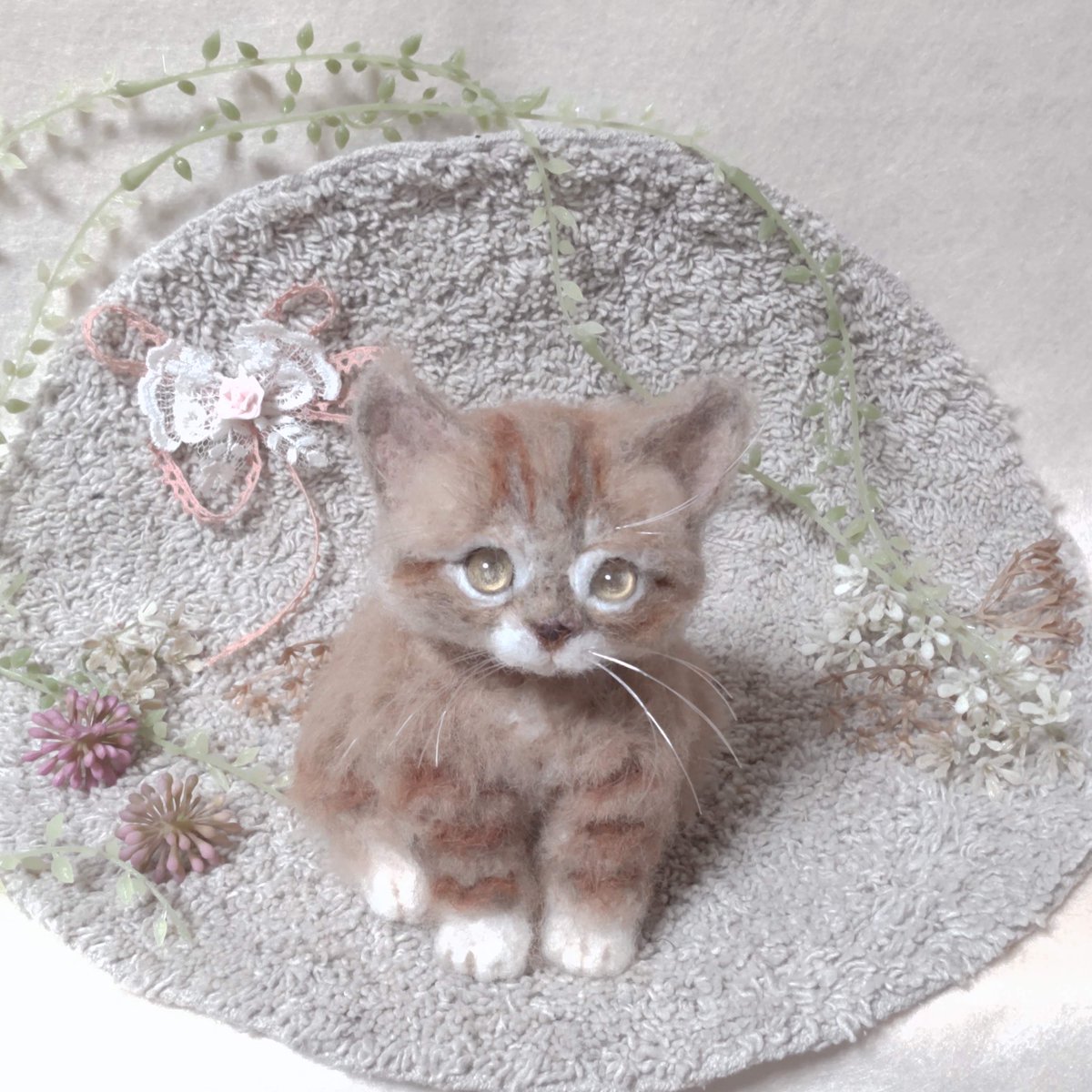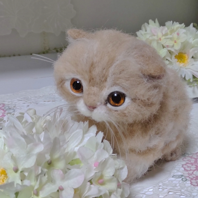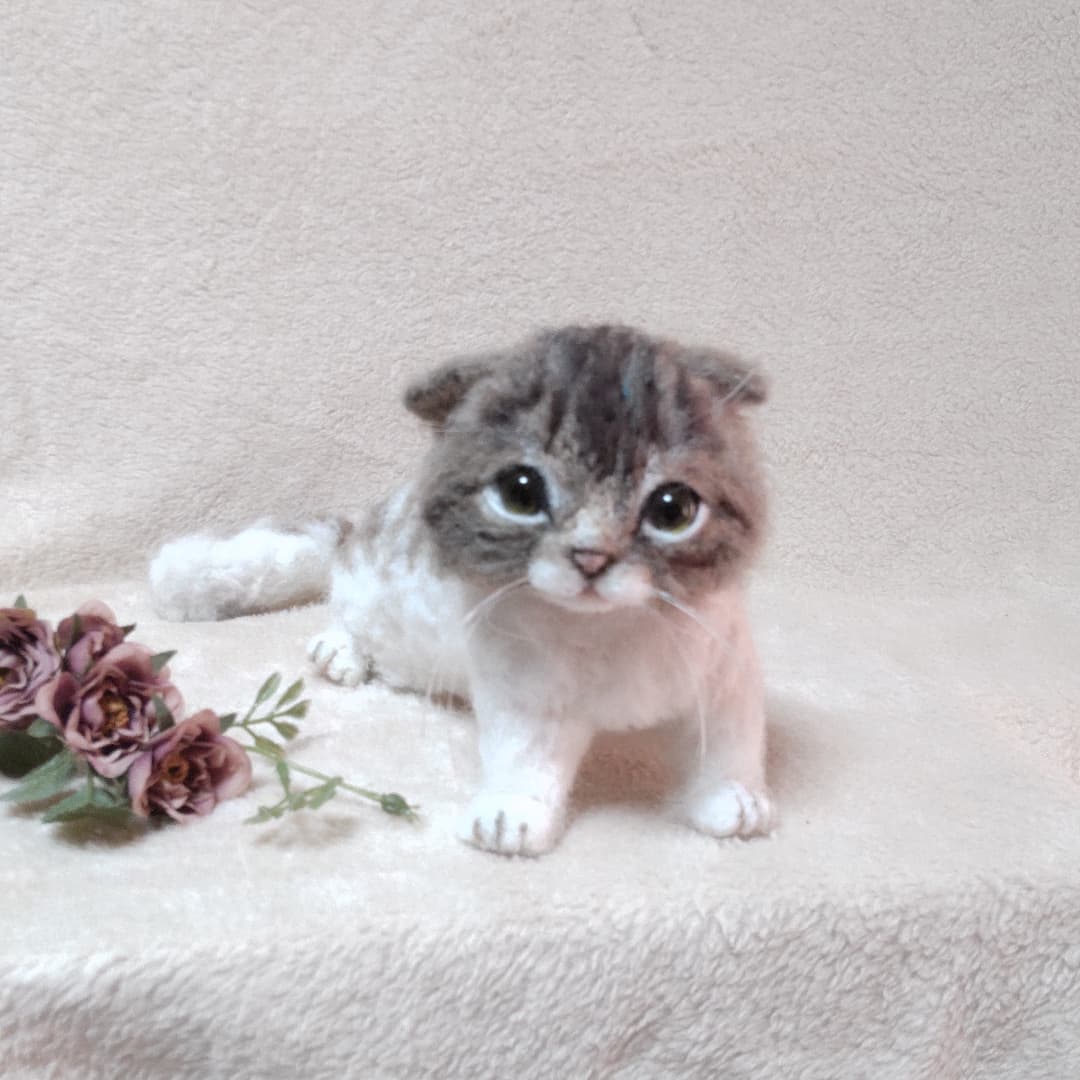 羊毛フェルトから生まれました😸 折れ耳で胴長短足ちゃんです💕 #羊毛フェルト #ねこ