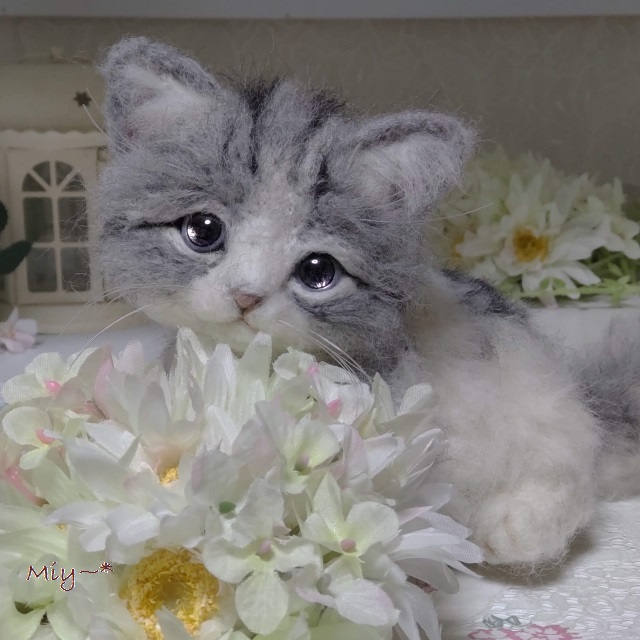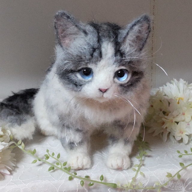 1 5 羊毛フェルト製の猫さん♪です(*^^*) #羊毛フェルト #猫 21/08/20 13:38